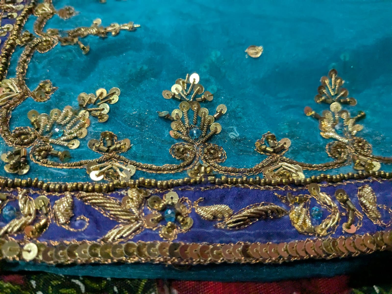 – Borders: Intricate lace, gota patti, or thread embroidery on all edges.